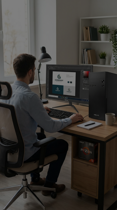 PC Profesional completa con procesador AMD Ryzen 5-5600GT, ideal para uso profesional en oficina o para emprendedores independientes que buscan seguridad y garantía.